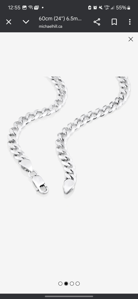60cm (24") 6.5mm Width Men's Curb Chain in Sterling Silver