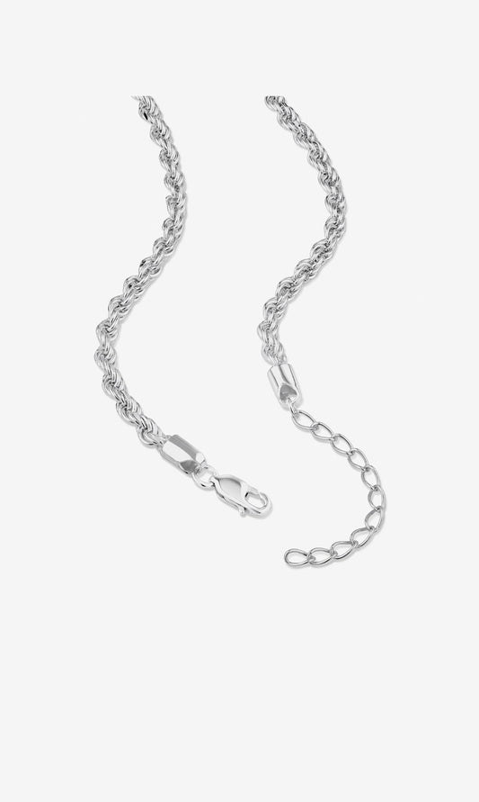 50cm (20") 3.5mm-4mm Width Rope Chain in Sterling Silver